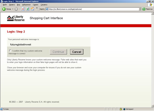 Чтобы быть уверенным что вы авторизируетесь на настоящем сайте либерти, нужно в аккаунте заполнить поле Personal Welcome message.
